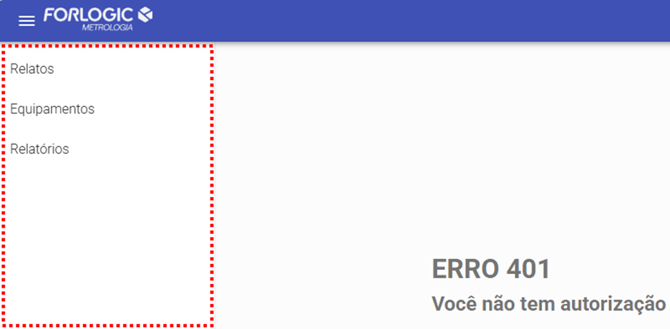 Ao acessar o sistema sem a permissão de visualizar a aba Itens, a seguinte tela será exibida: